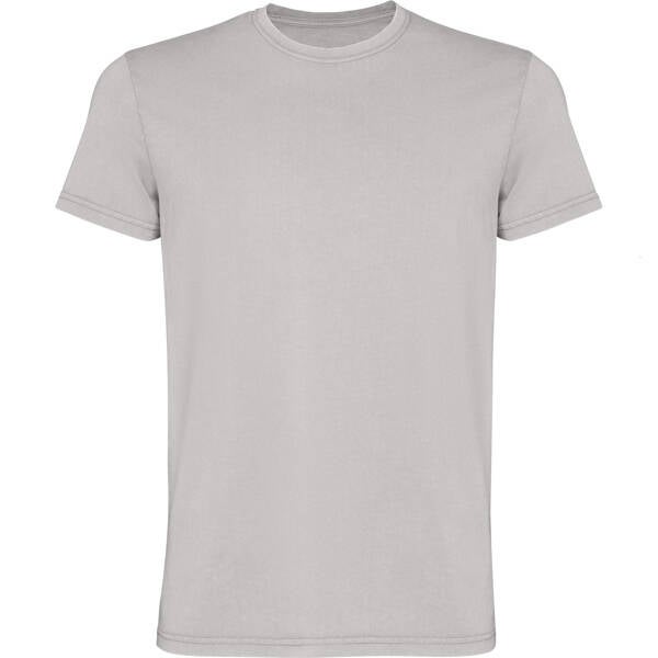 Heren T-shirt met korte mouwen, 100% katoen. 1x1 geribde ronde hals. Tono-in-tone coversteek.