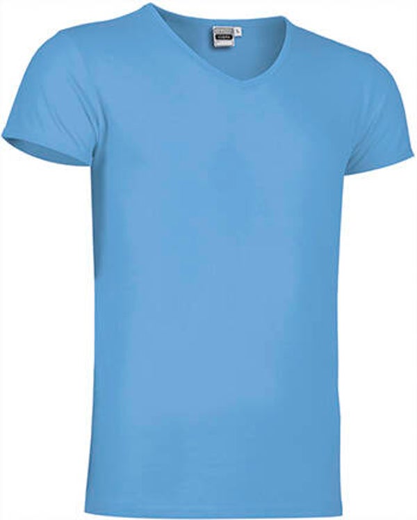 Elastisch T-shirt met korte mouwen, V-hals en aansluitende pasvorm.