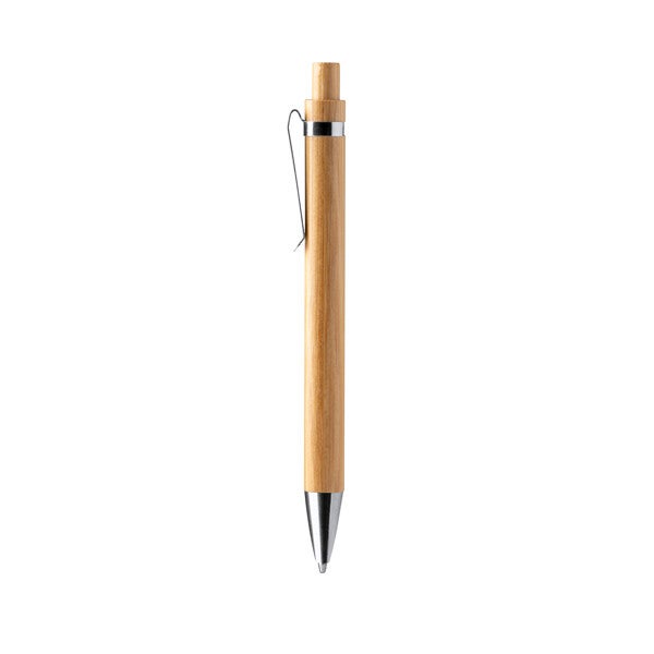 Balpen in bamboe met aluminium details. Blauwe inkt.