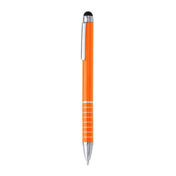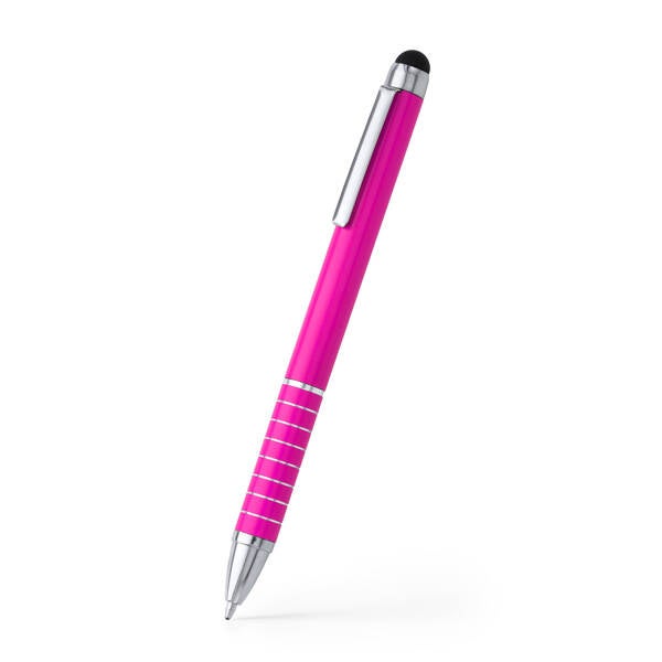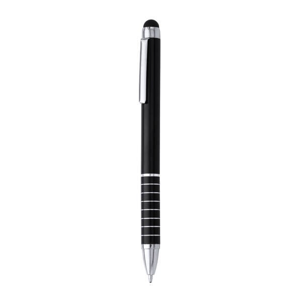 Aluminium pen met draaimechanisme en touchpointer. Blauwe inkt.