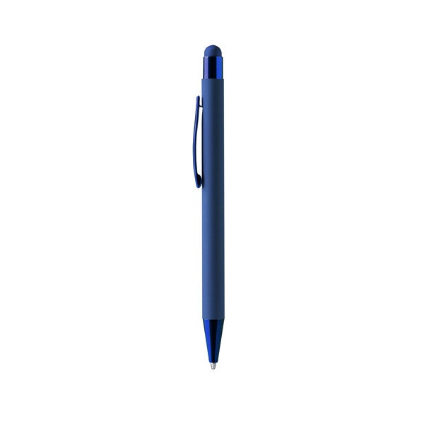 Drukbalpen met soft-touch metalen structuur. Speciaal voor laserprinten. Aanraakaanwijzer. Jumbo vulling met blauwe inkt.