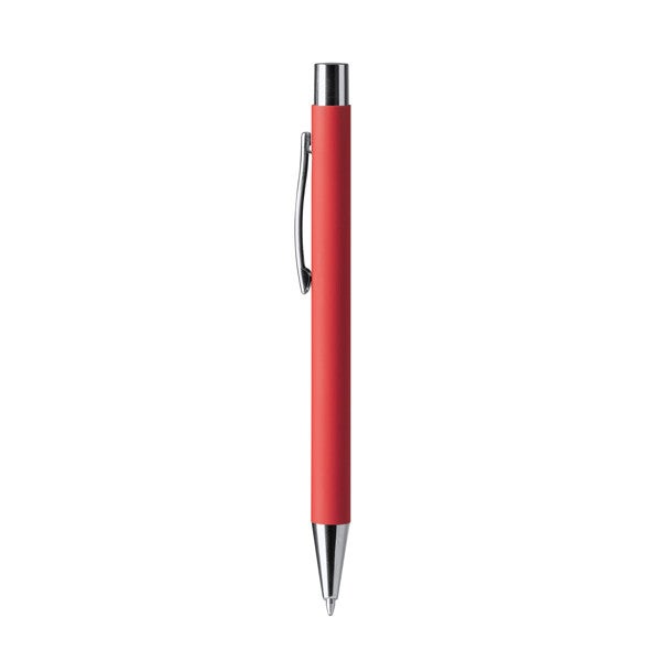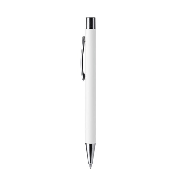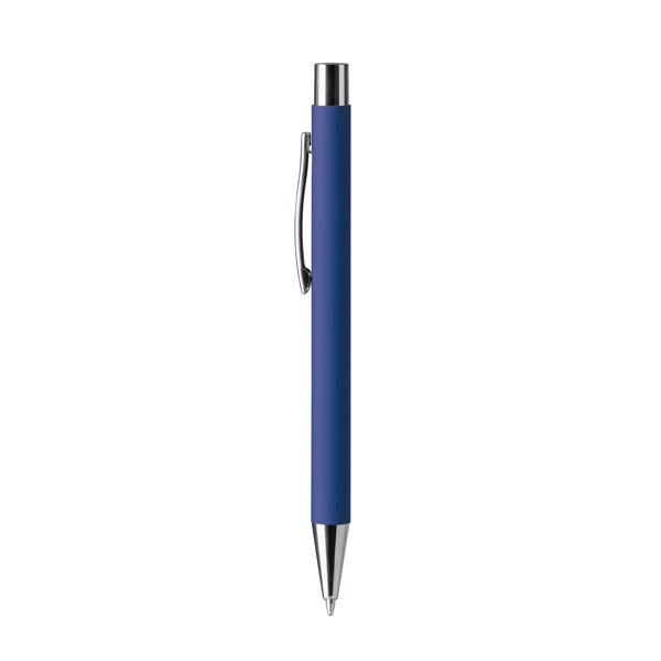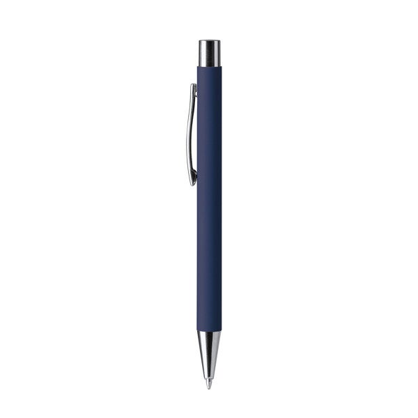 Push balpen met zacht aanvoelende metalen behuizing. Punt, clip en drukknop in verchroomde afwerking. Blauwe inkt. Speciaal voor laserprinten.